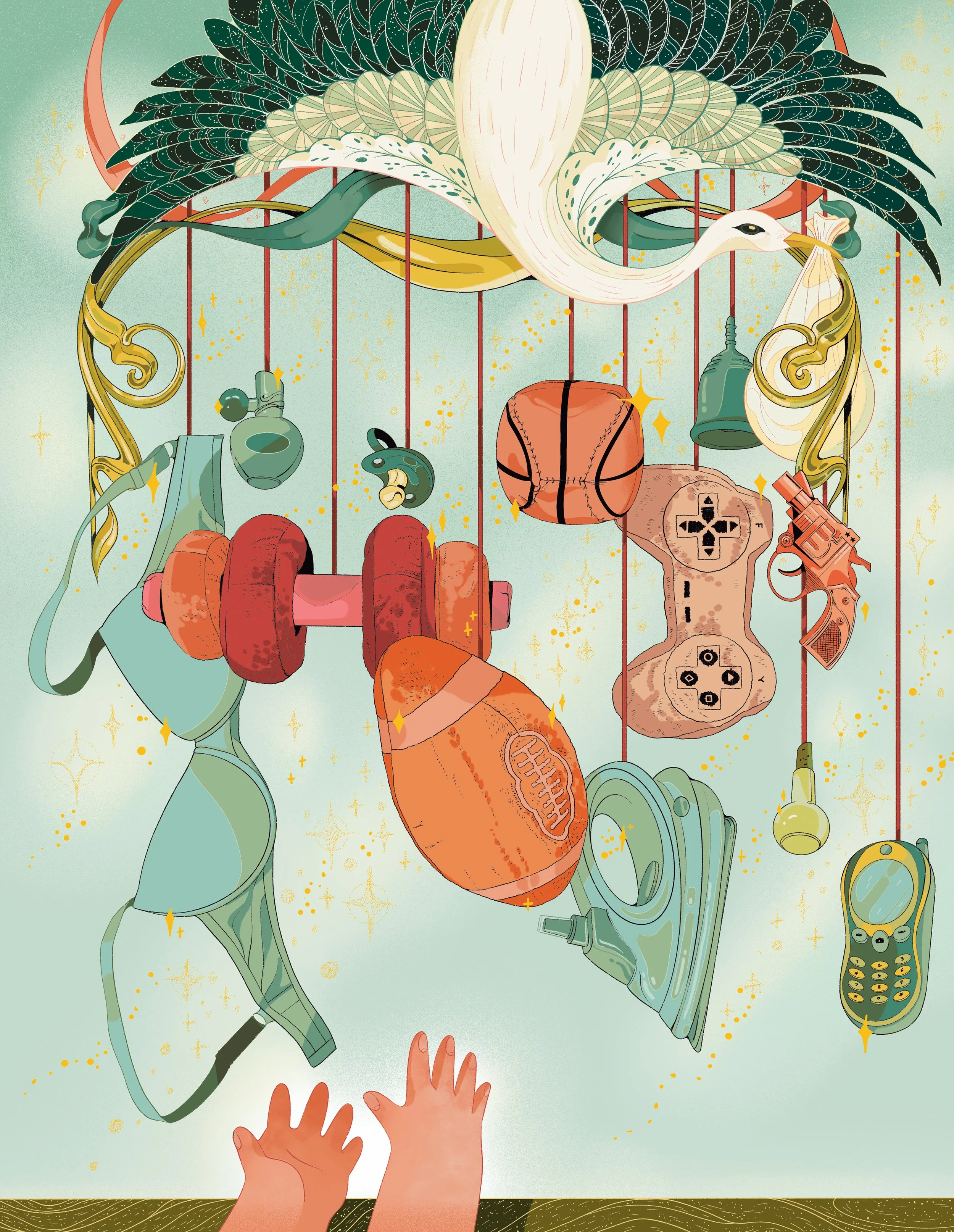 Her work and approach is the epitome of “creative inquiry”. We came to her with a concept – attachment to belief – and she dove into the idea from every angle, bringing it to life through a breathtaking collection of illustrations for our OK, But Why exhibit. Her collection is full of movement, storytelling, and intricate details that gently invite the viewer to join her in an illustrated world where curiosity is beautiful.